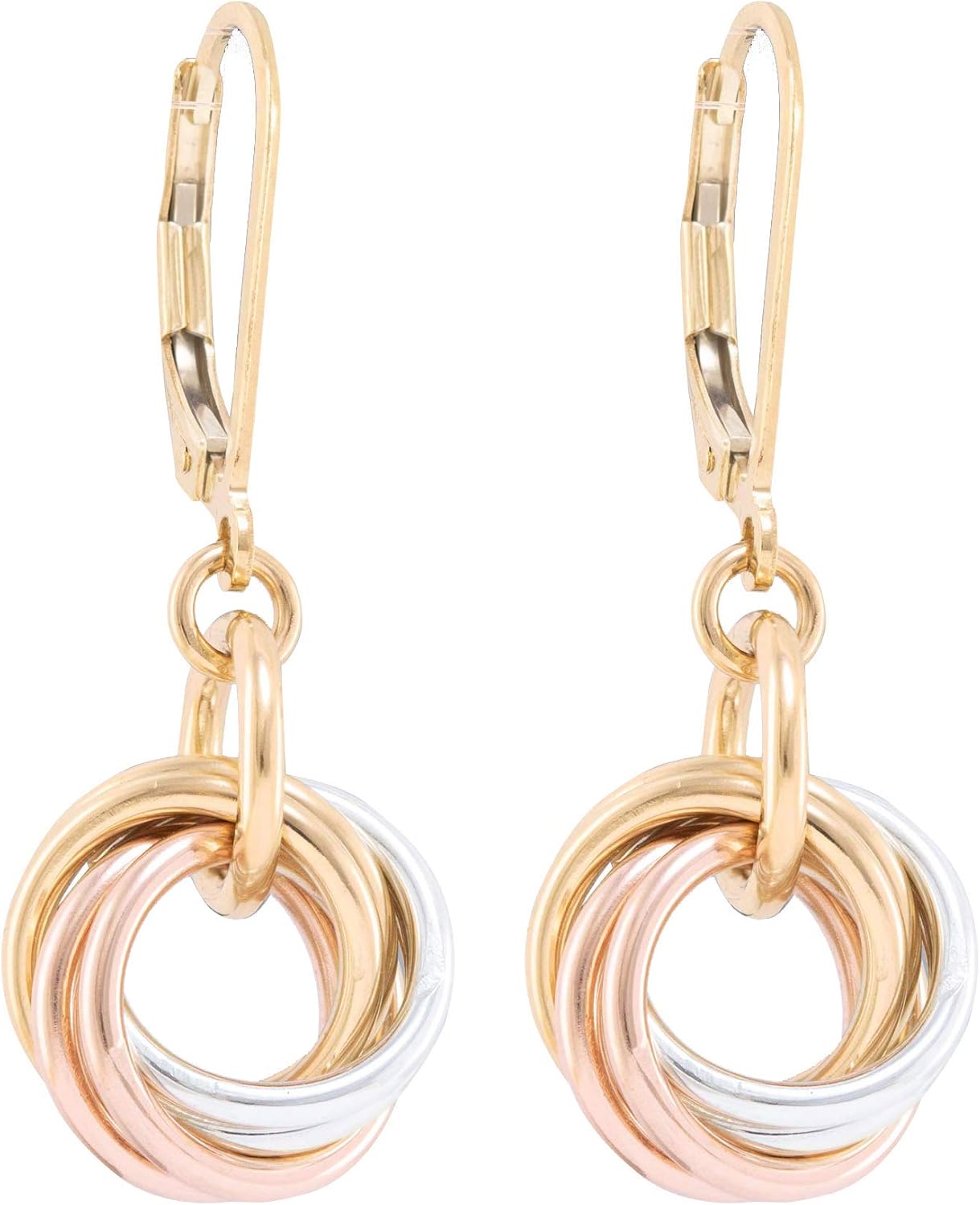 Dainty Tricolor Love Knot Earrings for Women | Sterling Silver with 14K Yellow and Rose Gold-Filled Circles | Minimalist Mixed Metal Dangle Jewelry Gift