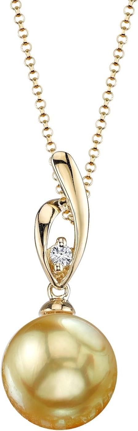 The Pearl Source 14K Gold Round Golden South Sea Cultured Pearl & Diamond Lois Pendant Necklace for Women