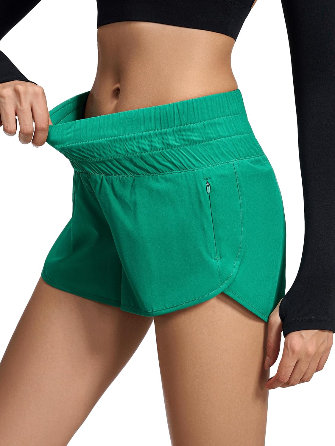MCEDAR Womens High Waisted Running Shorts Elastic Mesh Liner Dolphin Athletic Gym Workout Shorts with Zipper Pocket