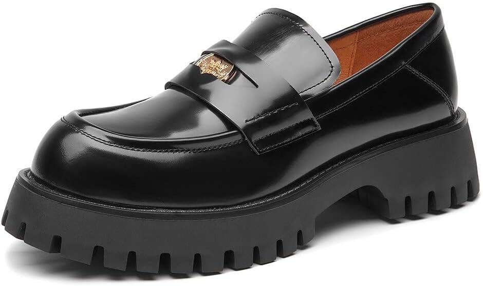 BEAU TODAY Chunky Loafers Women,Patent Leather Platform Loafers for Women,Lug Sole Slip On Penny Shoes,Comfortable Work Office Business Casual Dress Shoes