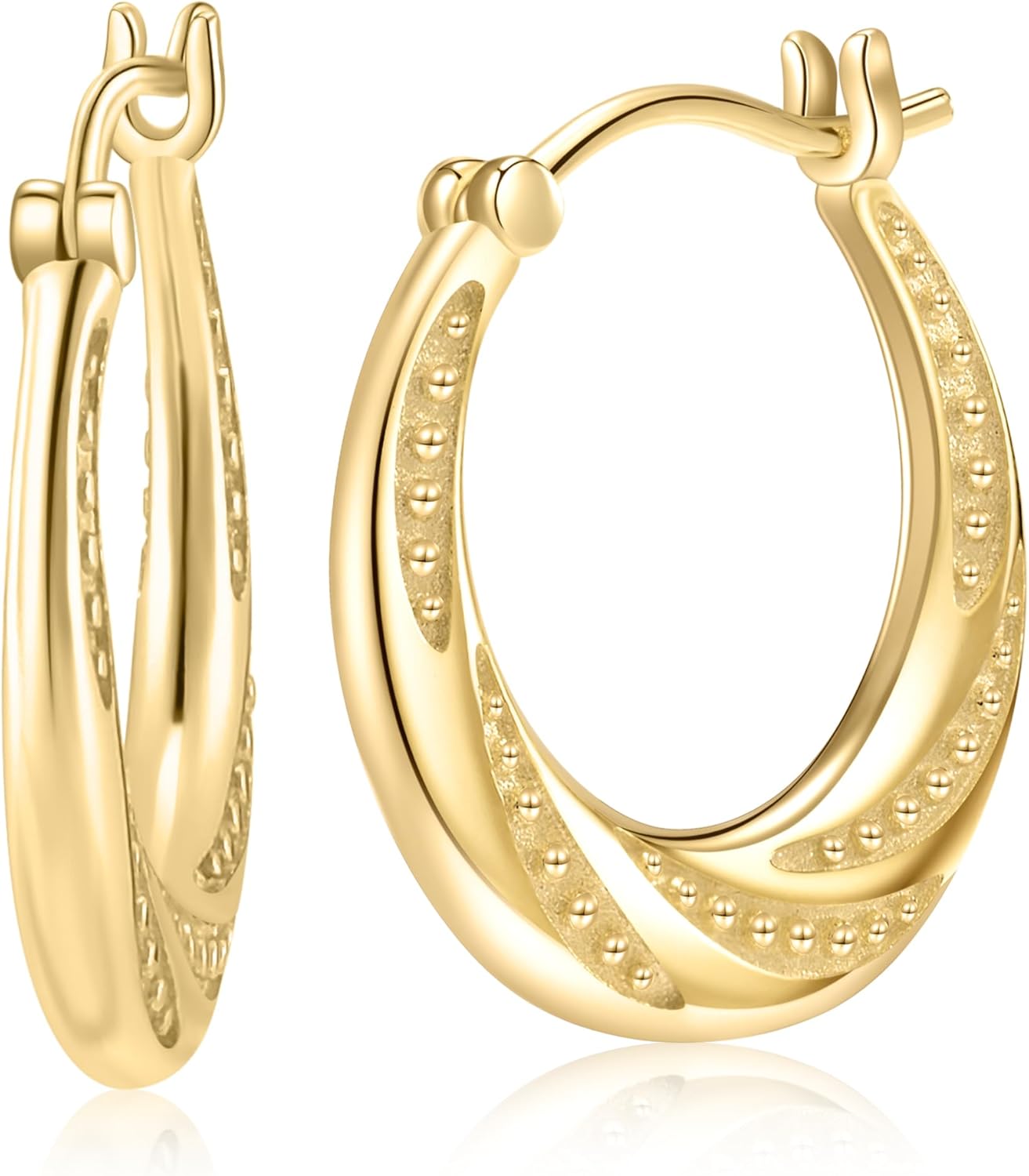 14K Gold Hoop Earrings for Women, Gold Earrings Hoops, Gold Vermeil Earrings Women Trendy Jewelry, 14K Gold Plated 925 Sterling Silver, 22mm