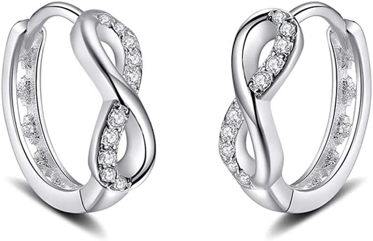 Infinity Small Hoop Earrings 925 Sterling Silver Dainty Cubic Zirconia Crystal Endless Love Sleeper Tiny Huggie Hoops Cartilage Tragus Earring Cute Jewelry Gifts for Women Sensitive Ears