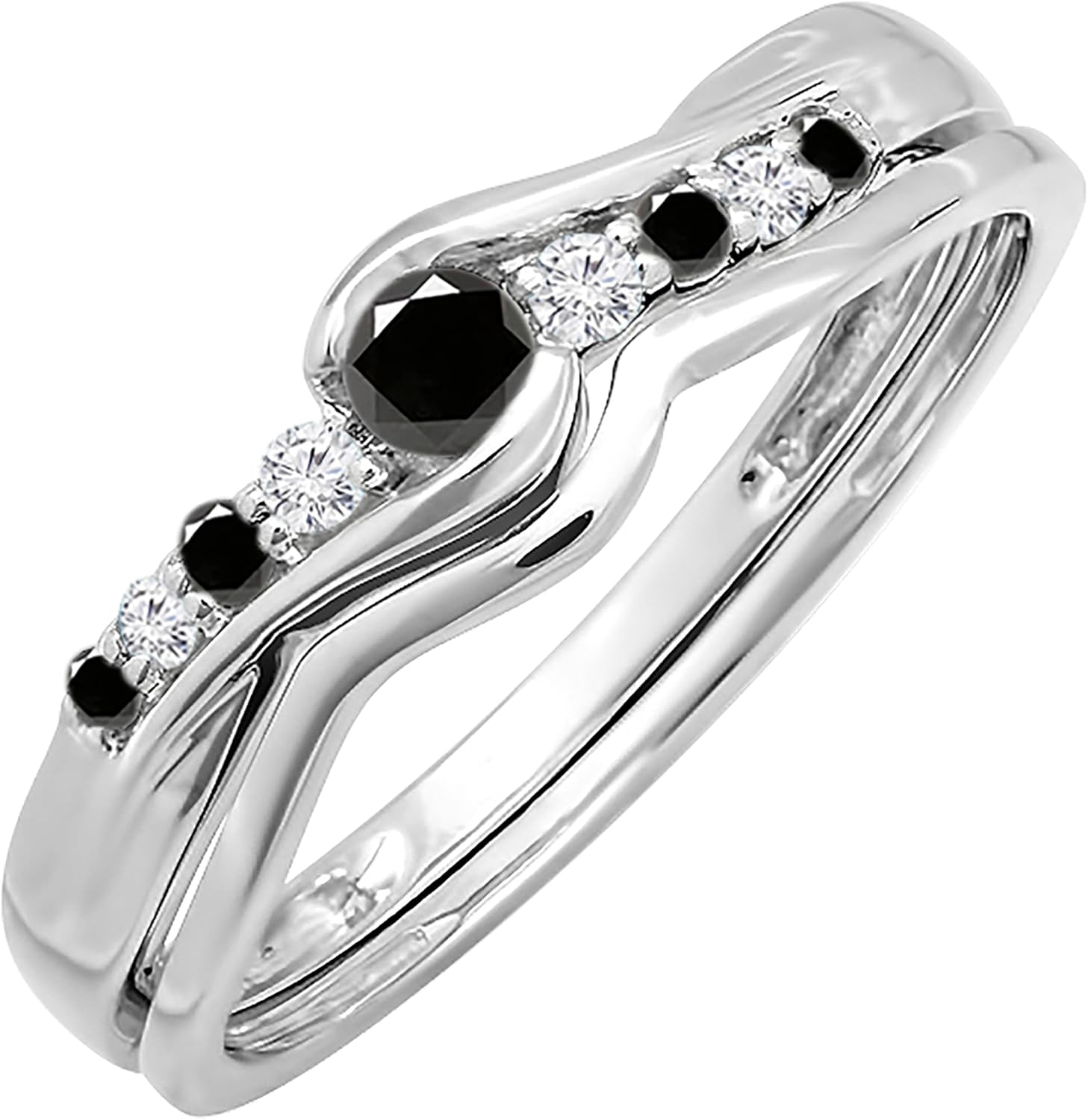 Dazzlingrock Collection 0.25 Cttw 10k Round Black & White Diamond Womens Bridal Promise Wedding Set Ring 1/, Solid White Gold
