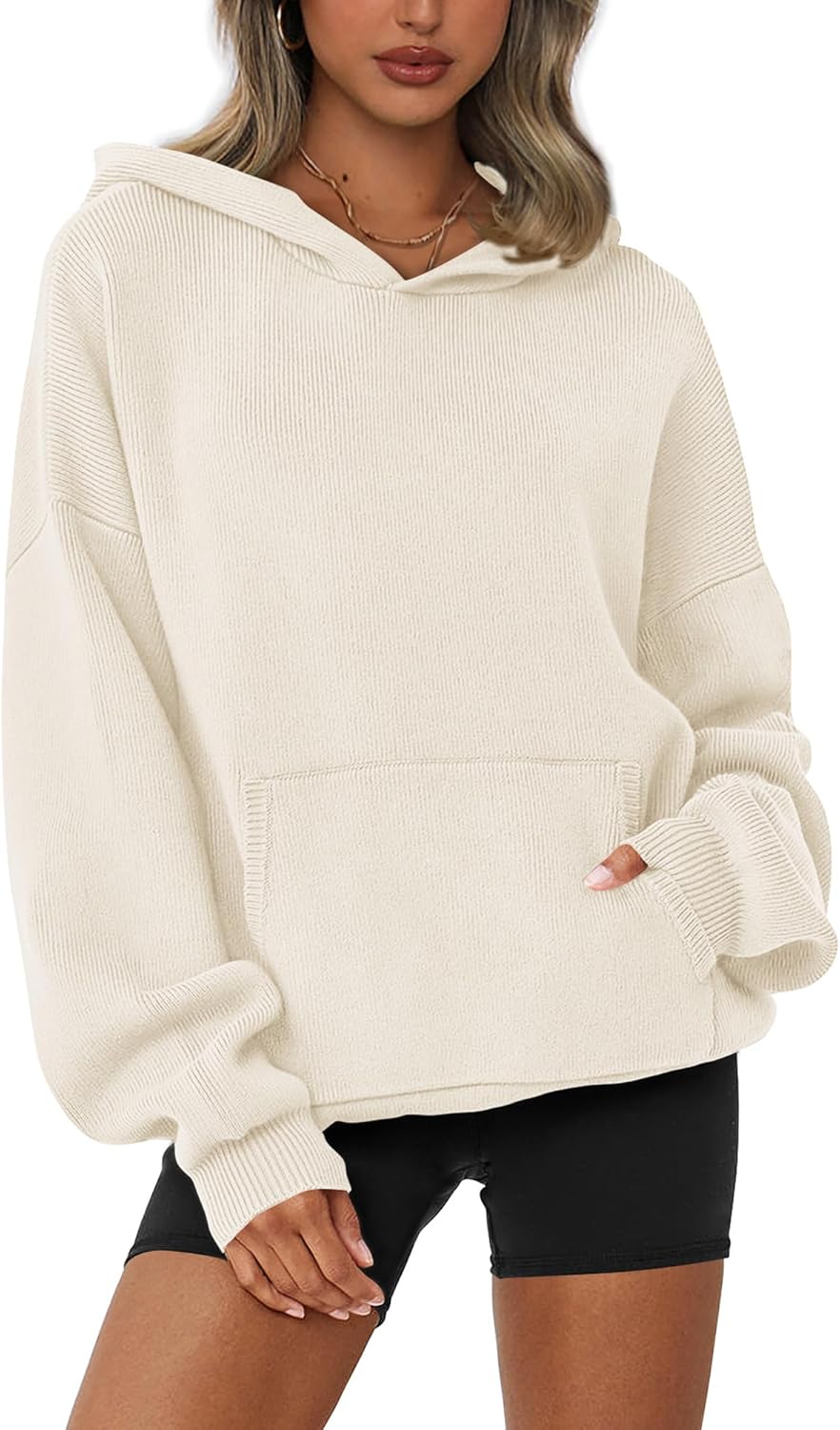 dowerme Women Oversized Sweaters 2026 Lantern Long Sleeve Drop Shoulder Chunky Knit Hooded Pullover Sweater with Pocket