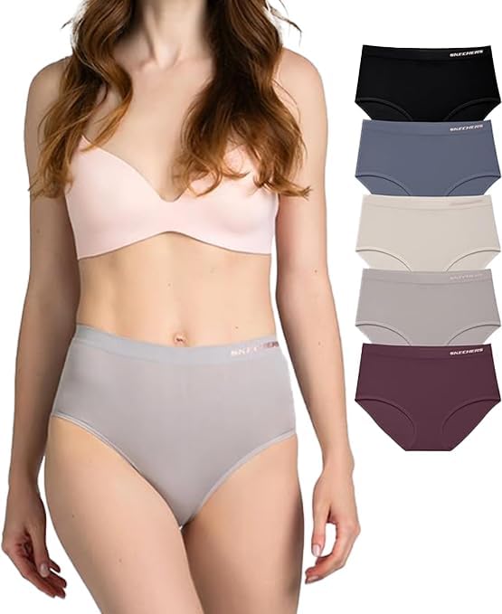 Skechers 5 Pack Womens Briefs, Seamless Underwear Panties, Ropa Sin Costuras Para Mujeres