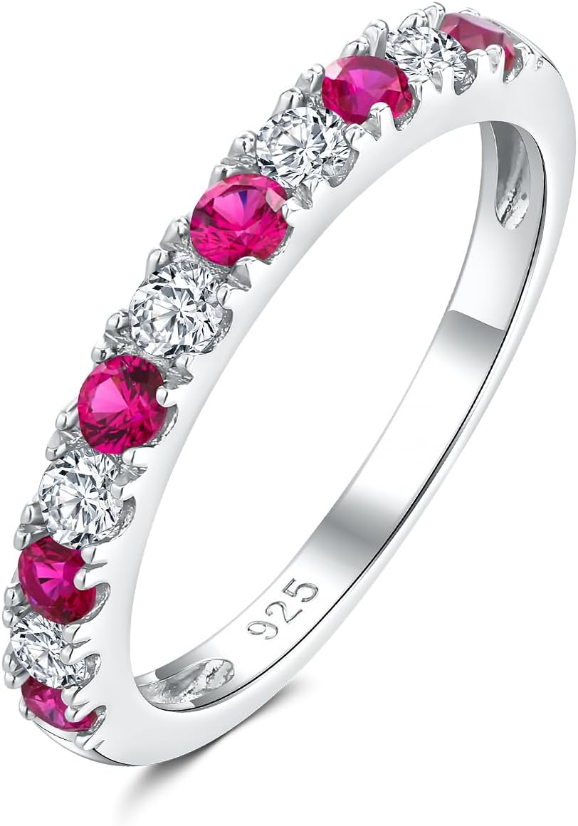 DAYBAYDAY Half Eternity Rings for Women, 925 Sterling Silver Amethyst/Aquamarine/Emearld/Ruby/Sapphire Eternity Band Ring, 2.5mm Think Stackable Rings Womens Wedding Bands Size 6-10