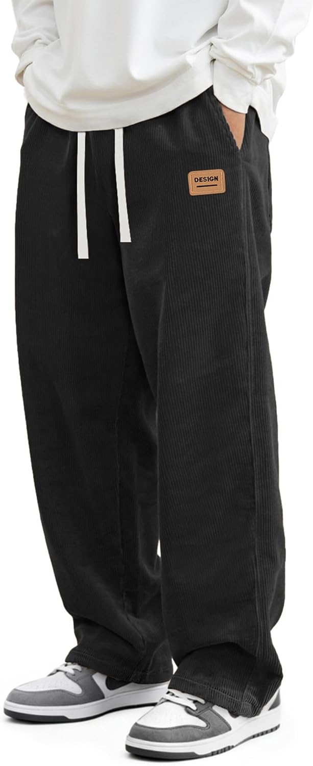 JEMLDL Mens Corduroy Pants Drawstring Elastic Waist Casual Pants Straight Baggy Sweatpants with Pockets