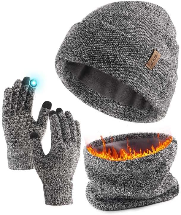 FURTALK Winter Beanie Hat Scarf Touchscreen Gloves Set 3 Pcs Warm Knit Beanies Hat Fleece Lined Skull Cap for Men Women