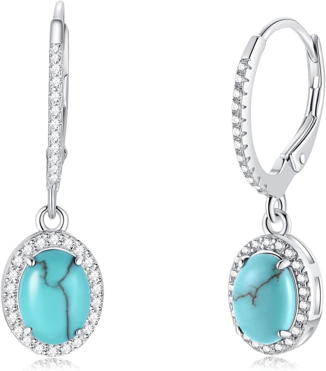 FANCIME Sterling Silver Created Turquoise Earrings Leverback Earrings Oval Halo Cubic Zirconia December Birthstone Earrings Fine Jewelry Gifts for Women