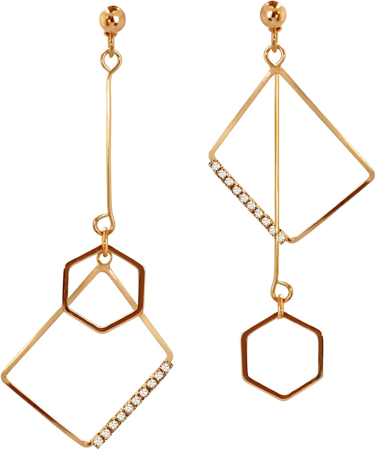 Mismatch Asymmetry Abstract Irregular Geometry Drop Dangle Earrings Sparkling Rhinestone Long Chain Pendant Earrings for Woman