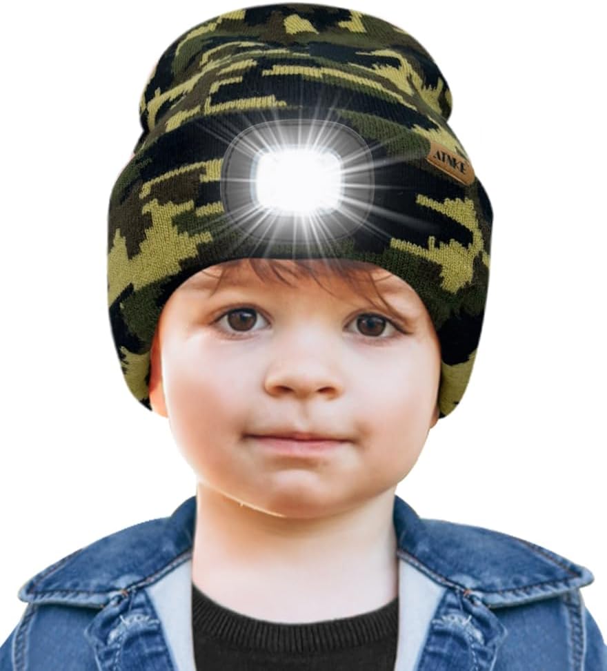 ATNKE Kids LED Lighted Beanie Cap,USB Rechargeable 4 LED Running Headlamp Bright Hat with Light Gifts for Boys and Girls