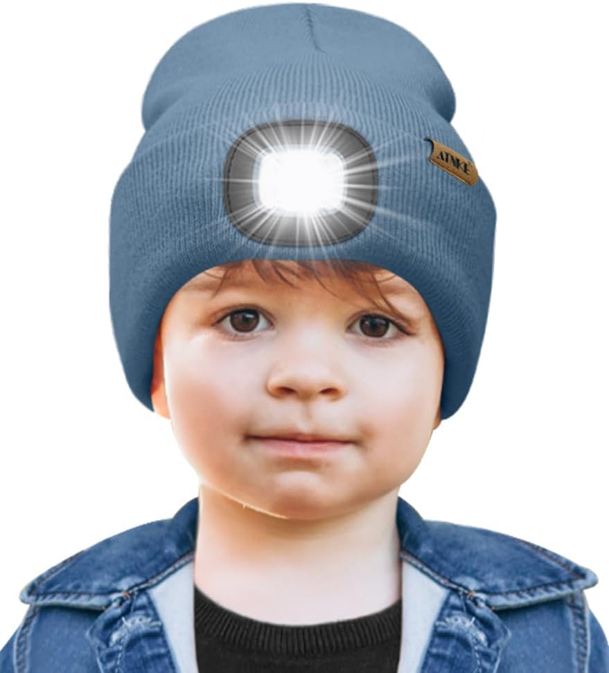 ATNKE Kids LED Lighted Beanie Hat,USB Rechargeable 4 LED Running Headlamp Bright Cap with Light Gifts for Boys and Girls