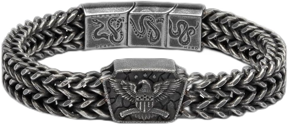 Hero Company American Eagle Don’t Tread On Me Men’s Bracelet - Stainless Steel Bracelet for Men - Helps Pair Veterans with a Service Dog or Shelter Dog