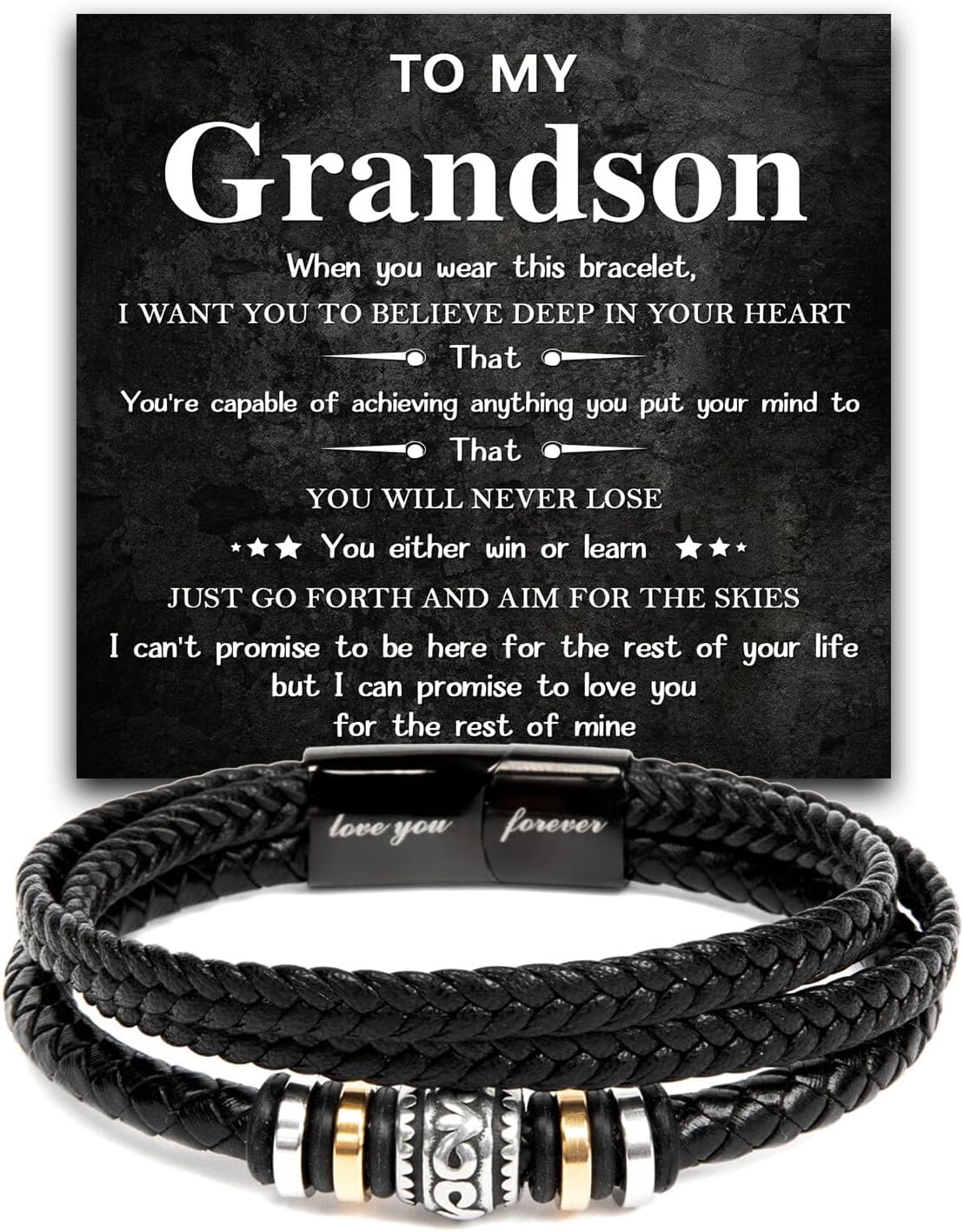Grandson Bracelet From Grandma Grandpa, Birthday Christmas Gifts For Grandsons, Braided Leather Bracelets Gifts For Grandsons , To My Grandson Love You Forever Bracelet With Message Card & Gift Box