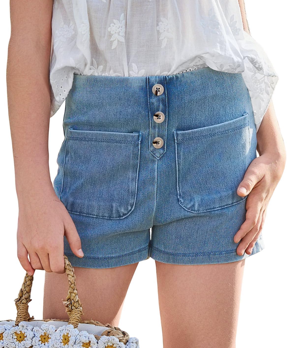 Haloumoning Girls Jean Shorts Kids Cute High Waist Shorts Button Summer Demin Shorts with Pockets 5-14 Years