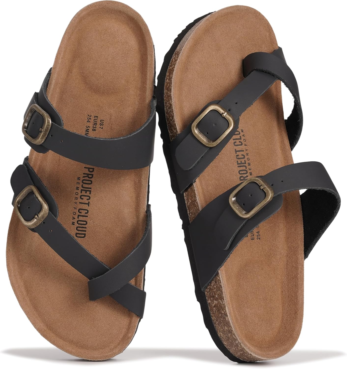 Project Cloud 100% Genuine Leather Womens Sandals -Lightweight Womens Slides Memory Foam Insole & Cork Footbed Sandals Women - Non-Slip Beach Essentials Summer Sandals for Women 2026 (Lian)