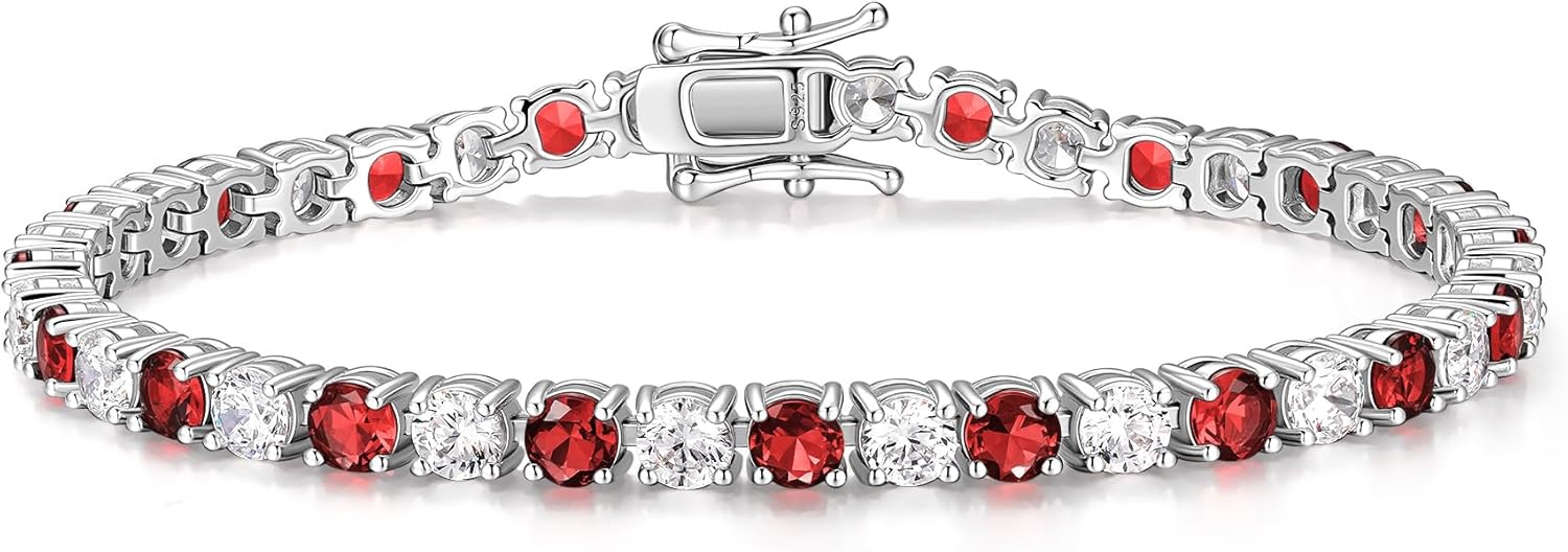 FANCIME Birthstone Tennis Bracelet, Sterling Silver Tennis Bracelets for Women, Fine Jewelry Wedding Bridal Prom Birthday Gift for Women Mom Wife, Length 7.2 Inch, Width 4mm