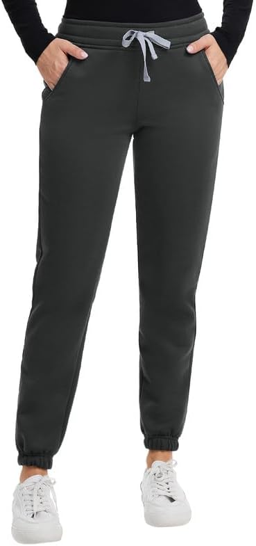 Kitmaz Women's Fleece Lined Joggers - Thermal Winter Scrub Pants, Mid-Rise Stretch Slim Fit with 3 Pockets