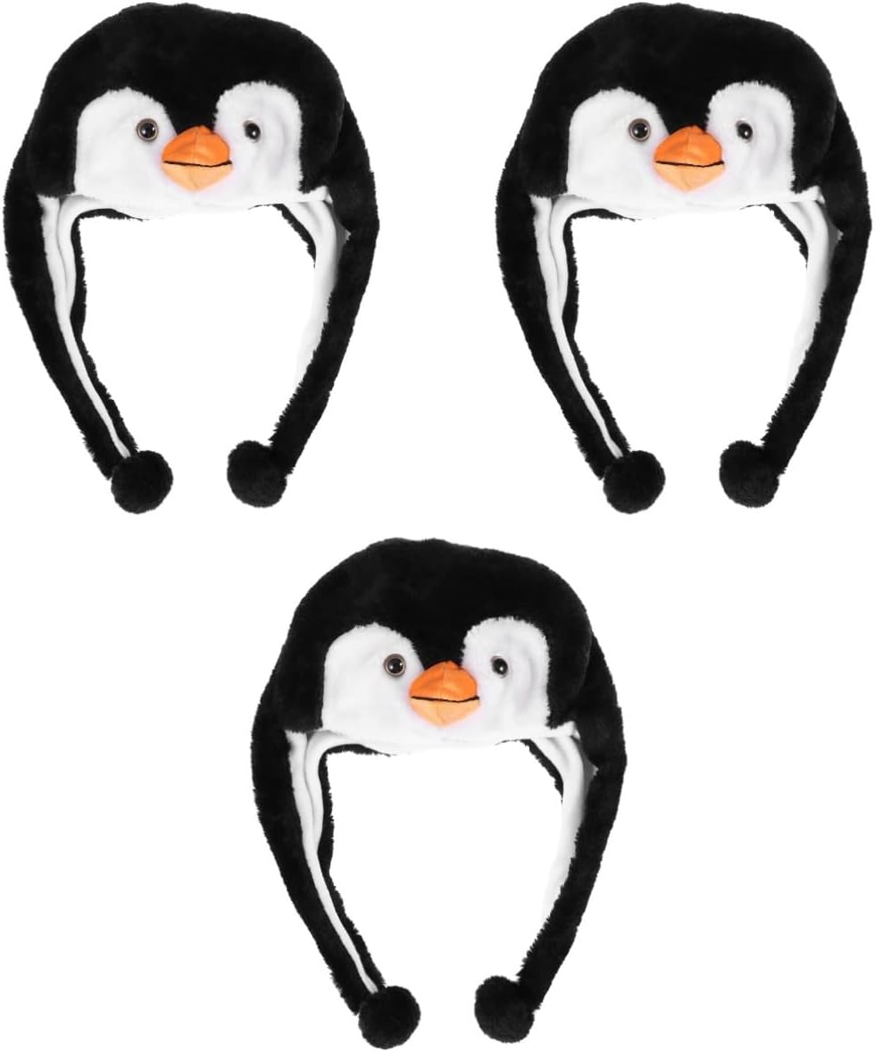 3pcs Plush Fun Animal Hats with Ear Flaps penguin Warm Hats - Cozy Winter Black White Novelty Party Cap for Kids Girls Boys - Soft Fleece Cute Cap for Women Cosplay Party
