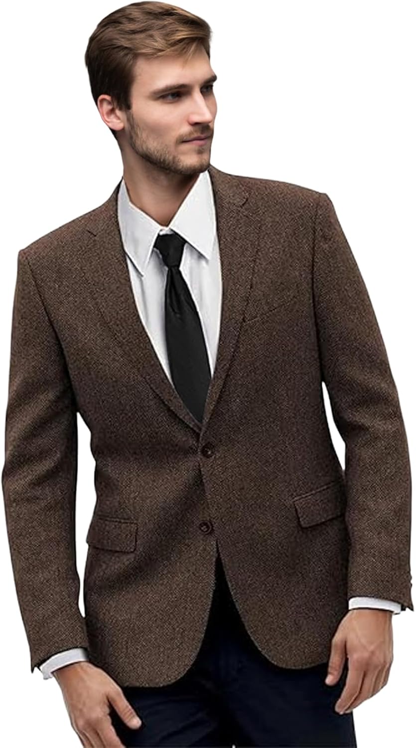 Men's Suit Jacket Herringbone Retro Tweed Blazer Wool Blend Prom Formal Dinner Men Tuxedo Jackets Blazers Business Suits Separates Sport Coats Brown 3XL