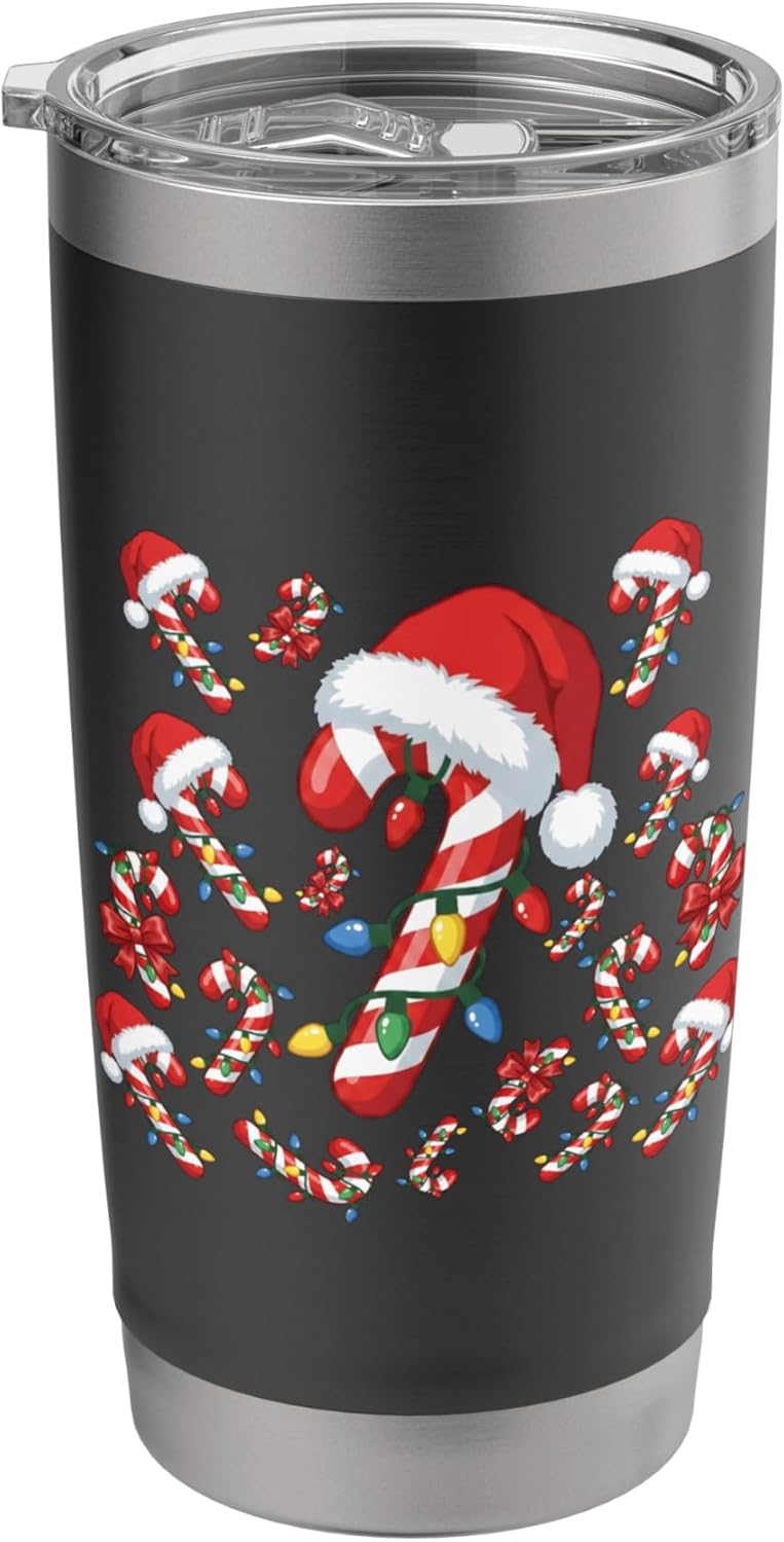 Candy Cane Christmas Coquette Bow Santa Xmas Lights Stainless Steel Insulated Tumbler