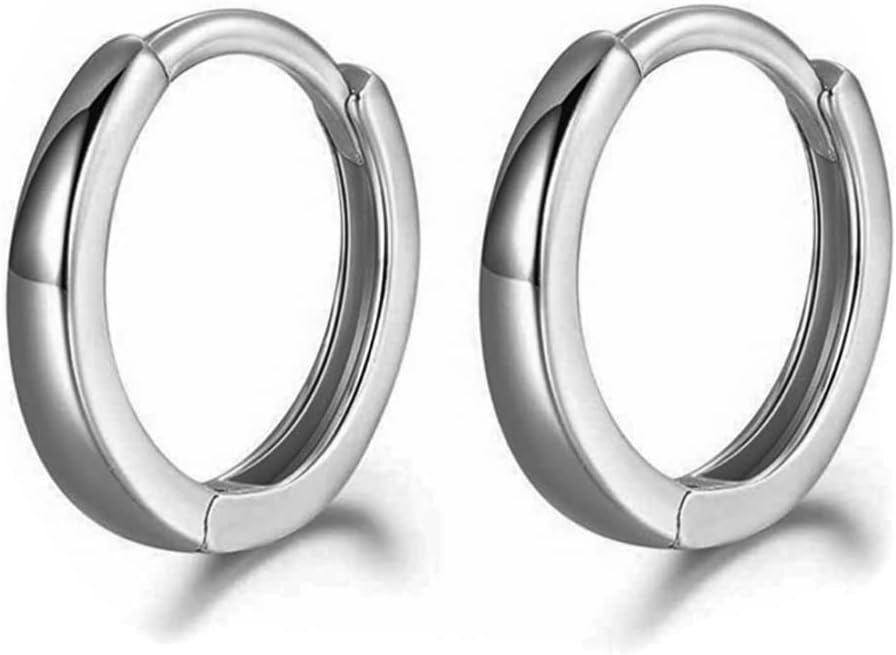 White Gold Plated 925 Sterling Silver Post Small Hoop Earrings for Women And Men Huggie Hoop Earring Lightweight Hypoallergenic 12mm
