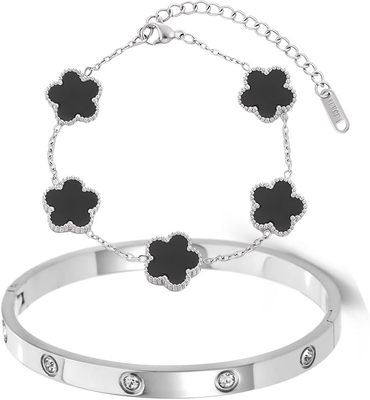 18K Gold Plated Clover Bracelets For Women, Four Leaf Clover Bracelet Lucky Birthday gift bracelet Jewelry Gifts Jewelry Gifts Trendy