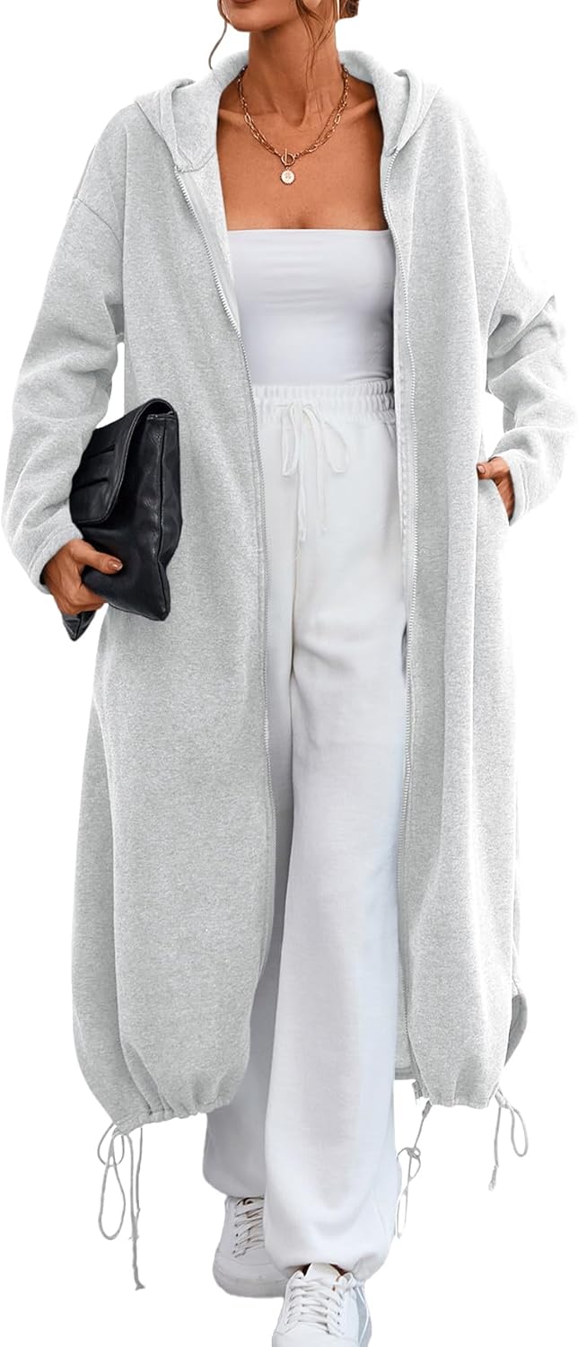 Ebifin Women's Oversized Full Zip Sweatshirts Drop Shoulder Hoodies Drawstring Long Jackets With Pockets Grey