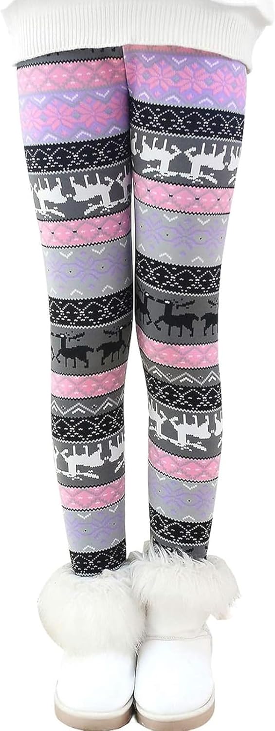 Rysly Girls Winter Thick Warm Long Pants Printing Fleece Lined Leggings