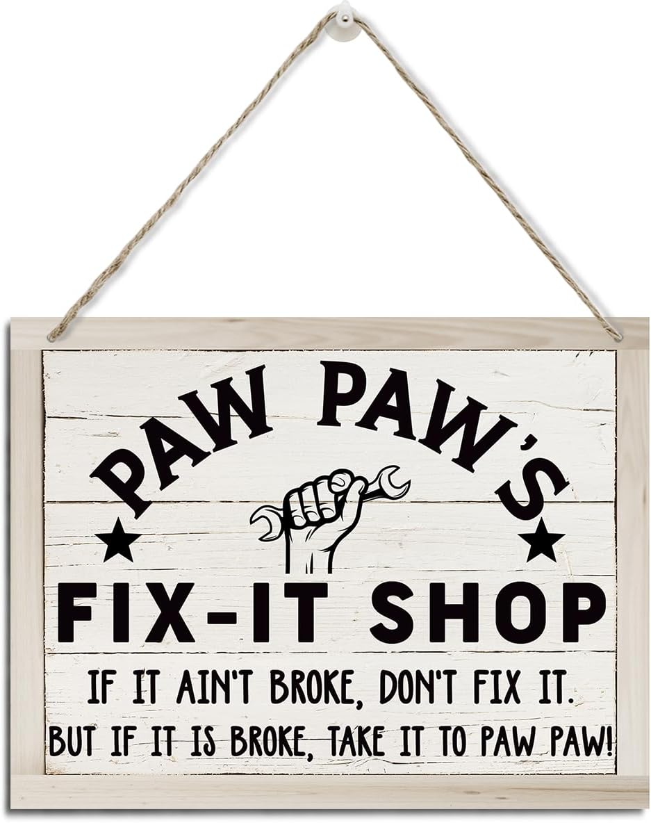 Paw Paw Gifts, Paw Paw Wooden Sign for Father's Day, Rustic Hanging Wood Plaque Sign, Workshop Door Hanger, Farmhouse Home Garage Decor, Grandpa Gift, Paw Paw's Fix-It Shop Hanging Sign