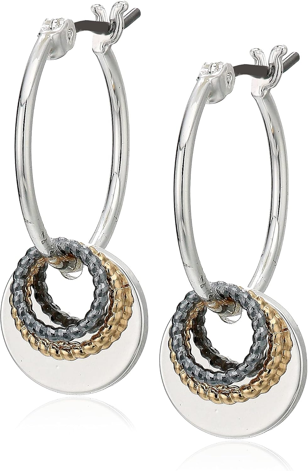 Nine West Women's Shaky Drop Off Hoop Earrings Tri Tone