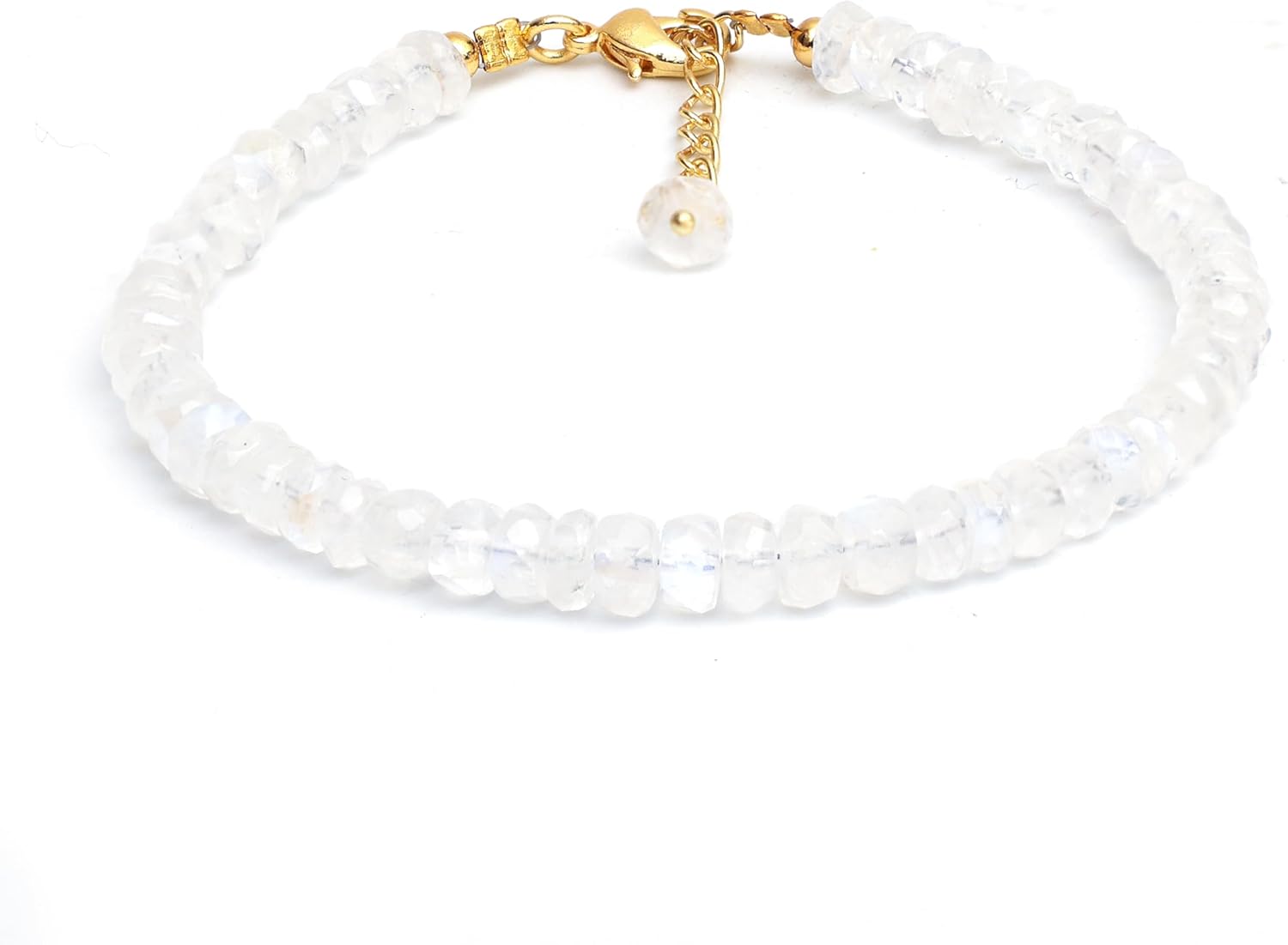 Gempires Rainbow Moonstone Beaded Bracelet June Birthstone Handmade Jewelry Hypoallergenic 8 Inch Gold Plated Lightweight New Beginning Bracelets