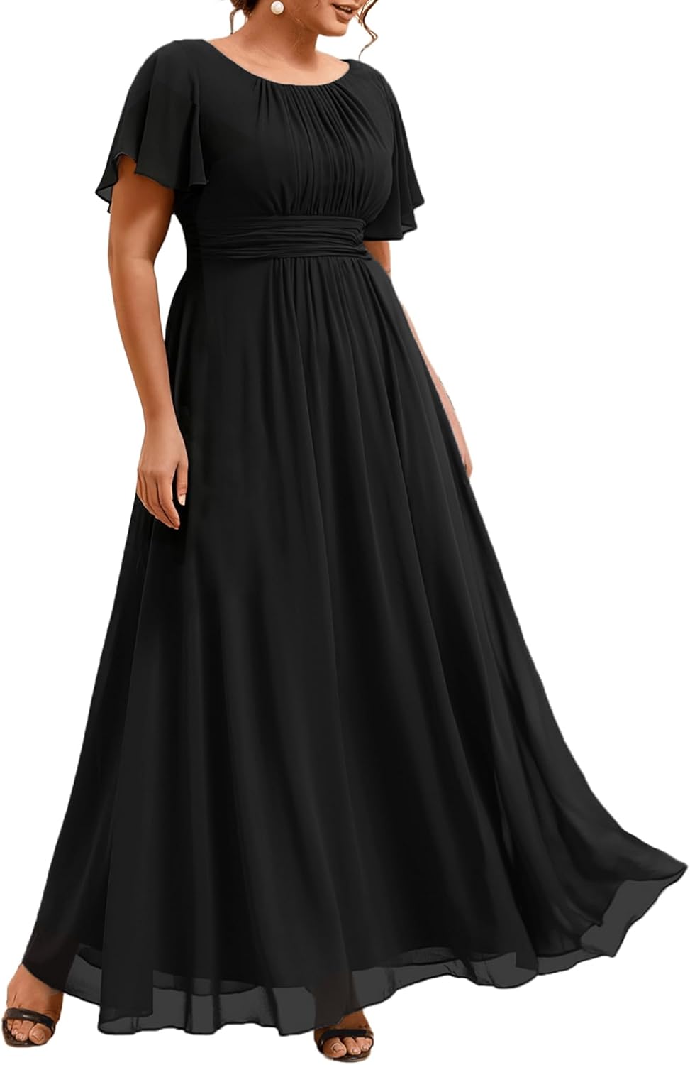 Ever-Pretty Plus Elegant Formal Dresses for Curvy Women Round Neck Short Sleeves Chiffon Bridesmaid Mother of The Bride Dress