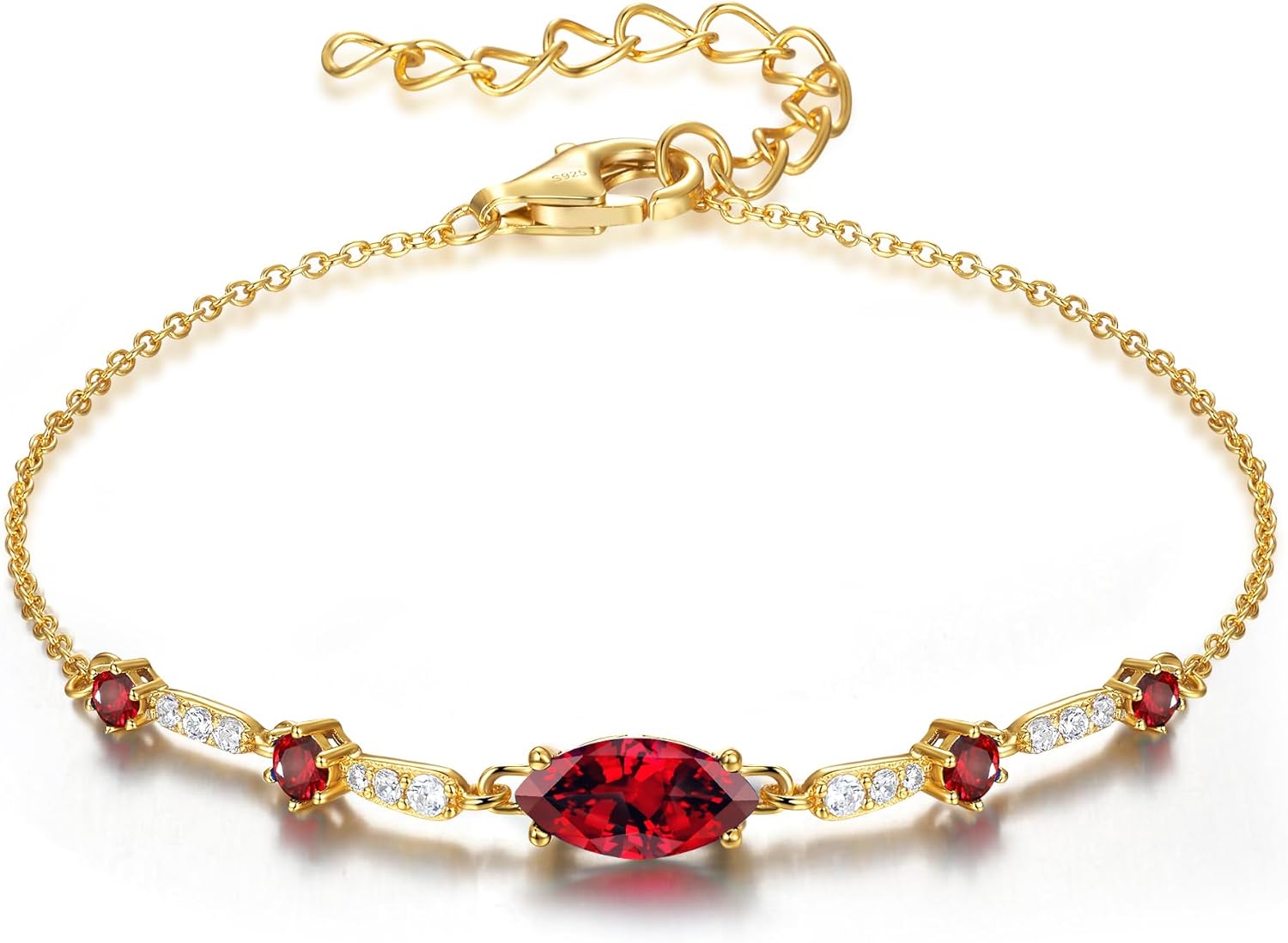 E Gifts for Her Birthstone Bracelets: 5A CZ REAL 18K White/Yellow Gold Plated 925 Sterling Silver Charm Chain Link Bracelet - Birthday Gift for Women Wife Mom Daughter Girlfriend