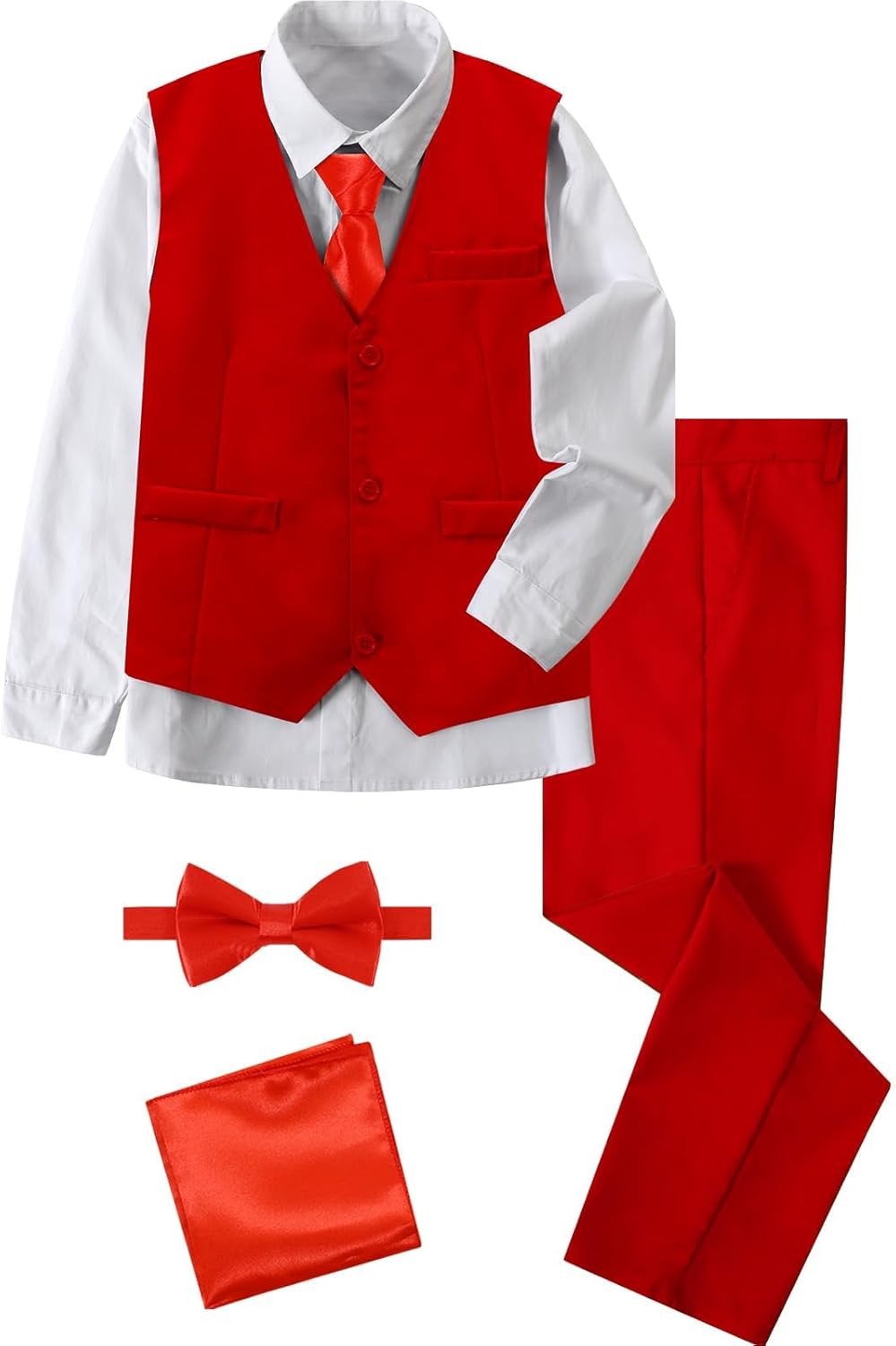 A&J DESIGN Boys 6-Piece Formal Suit Set with Dress Shirts, Vest, Pants, Tie, Bowtie and Pocket Square