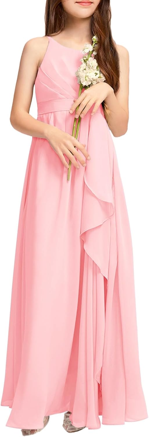 Imily Bela Girls Chiffon Dresses Formal Sleeveless Junior Bridesmaid Wedding Party Maxi Dress