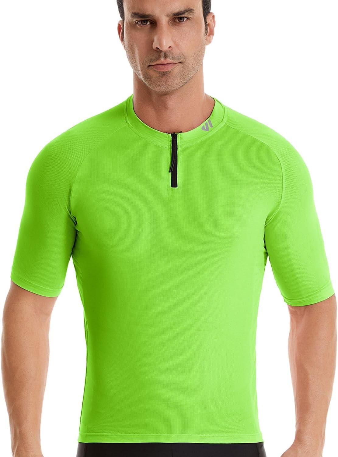 Wulibike Cycling Jersey Men Short Sleeve, Road Bike Jerseys Half Zipper with Pockets, Bicycle Clothing Breathable Quick Dry Green L