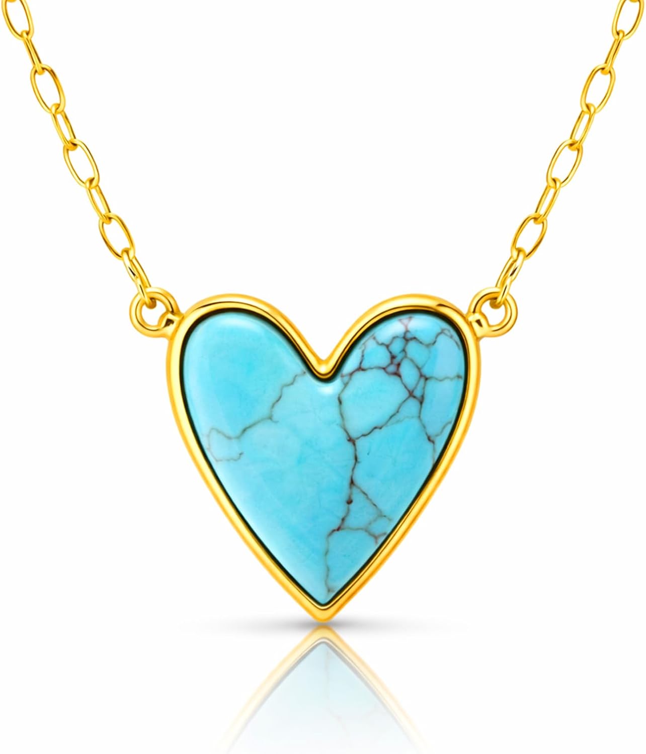Sheplus Gifts for Daughter - Genuine Turquoise Heart Pendant Gold Necklace Real Western Love Paper Clip Jewelry