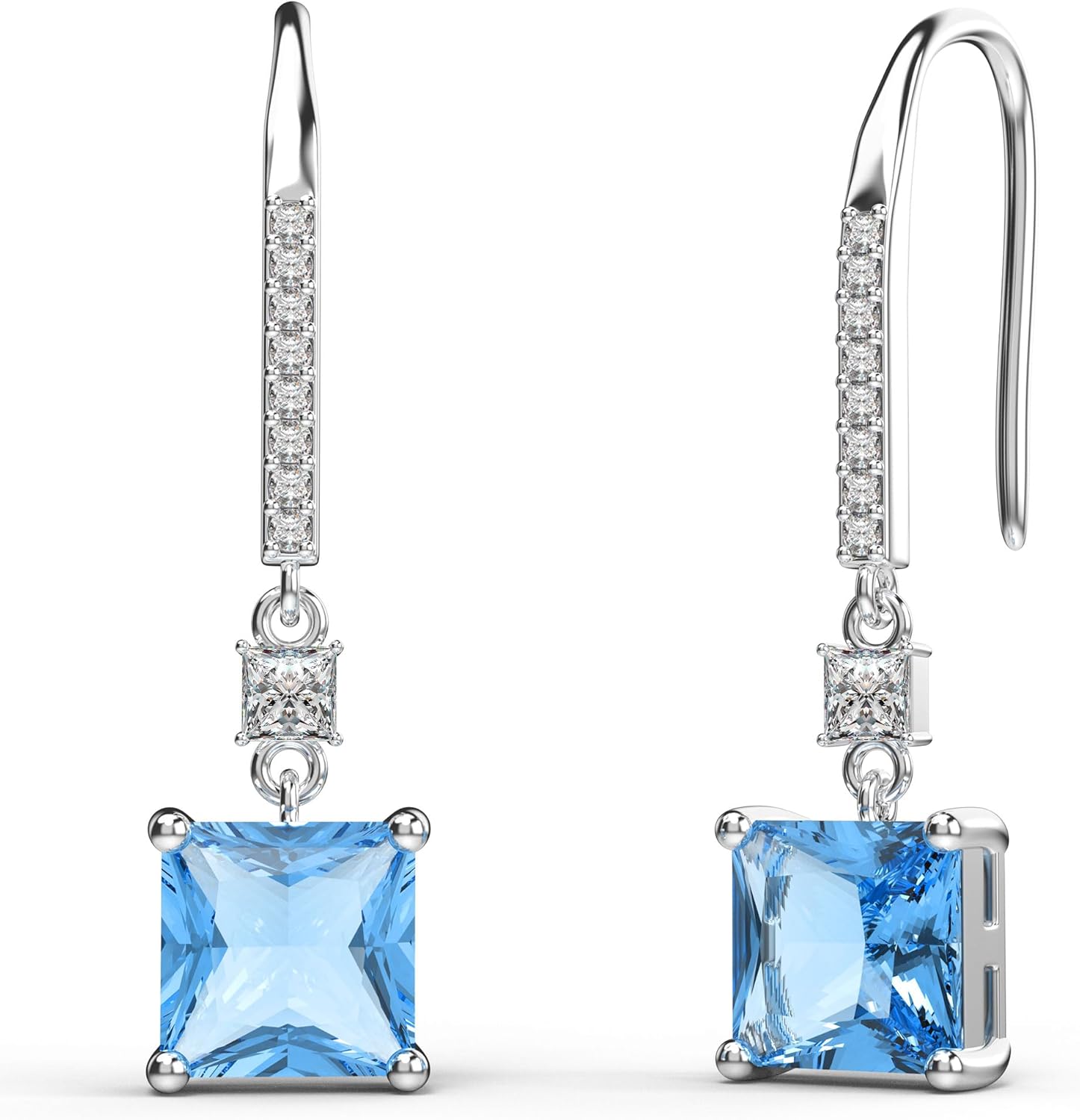 18K White Gold Plated Sterling Silver Square Princess Cut Cubic Zirconia Dangle Earrings for Women Square CZ Diamond Drop Dangling Earrings for Women Mom Hypoallergenic (Aquamarine)