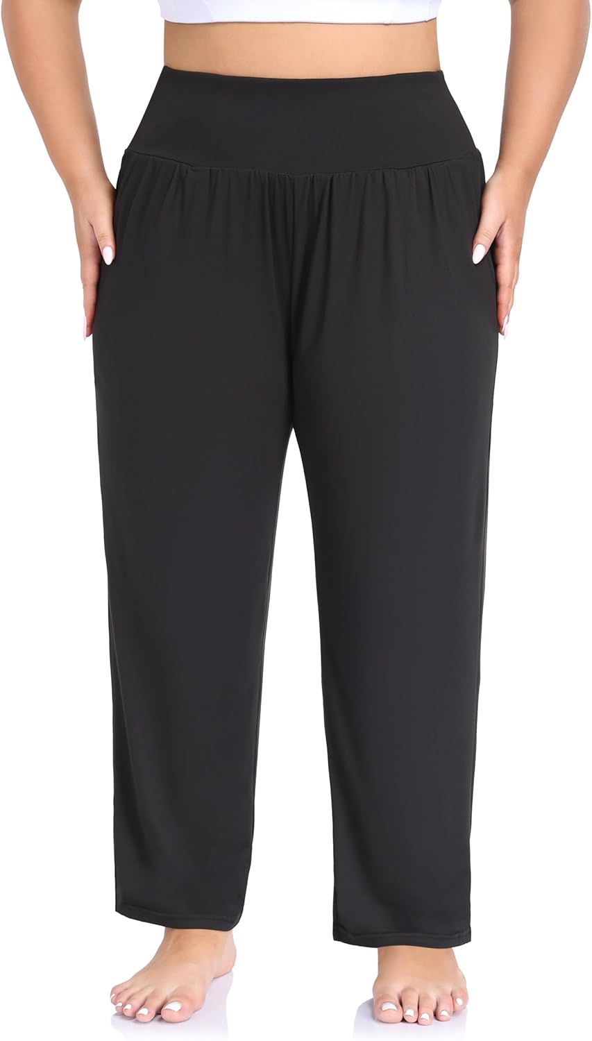 ZERDOCEAN Women's Plus Size High Waist Yoga Pants Casual Comfy Relaxed Loose Lounge Pants with Pockets