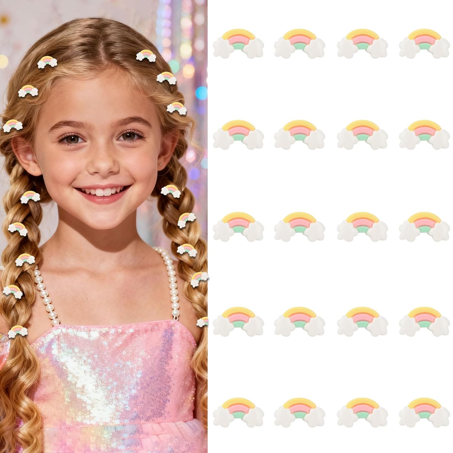YISSION 20PCS Mini Rainbow Cloud Hair Clips for Women & Girls, Cute Pastel Rainbow Hair Pins, Small Hair Accessories for Braids, Daily Styling & Parties