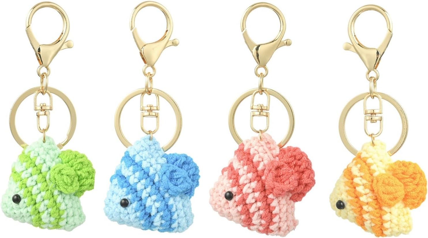 Ipotkitt 4 pcs 4 Styles Wool Weaving Tropical Fish Keychains with Lobster Claw Clasps Cute Sea Ocean Animal Key Ring Bag Charms for Key Purse Party Favor DIY Crafts