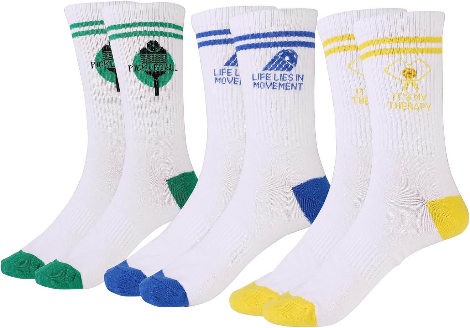 BOXOB 3 Pack Pickleball Socks, Cotton Pickle Ball Socks in One Size Pickleball Accessories Funny Pickleball Gifts for Men & Women