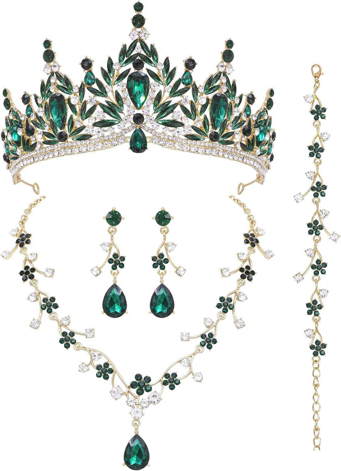 Oriamour Tiaras and Crowns for Women,Tiaras Earrings Necklace Bracelet, Crystal Bridal Jewelry Set, Costume Party Halloween Prom Pageant Jewelry Wedding Jewelry Set