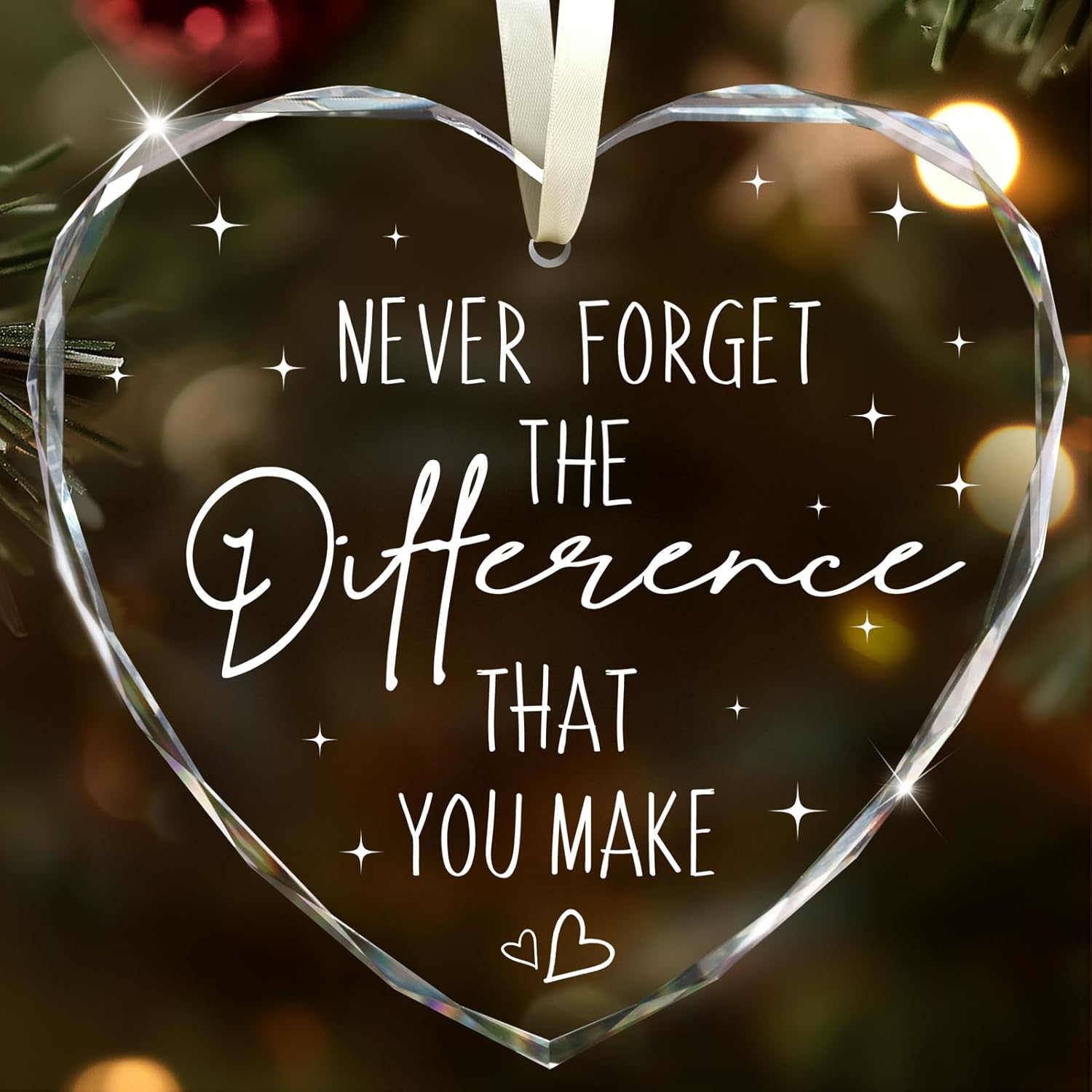 - Appreciation Gifts for Women/ Men: Our heart-shaped glass ornament, adorned with the uplifting quote 'Never Forget The Difference That You Make,' is perfect for expressing gratitude and appreciation. Suitable for men or women, it serves as a lasting reminder of the impact they've had. Let your thanked ones know that their efforts are cherished and will never be forgotten. Ideal gift for thank you, retirement, farewell, goodbye, going away, leaving, Administrative Professional Day