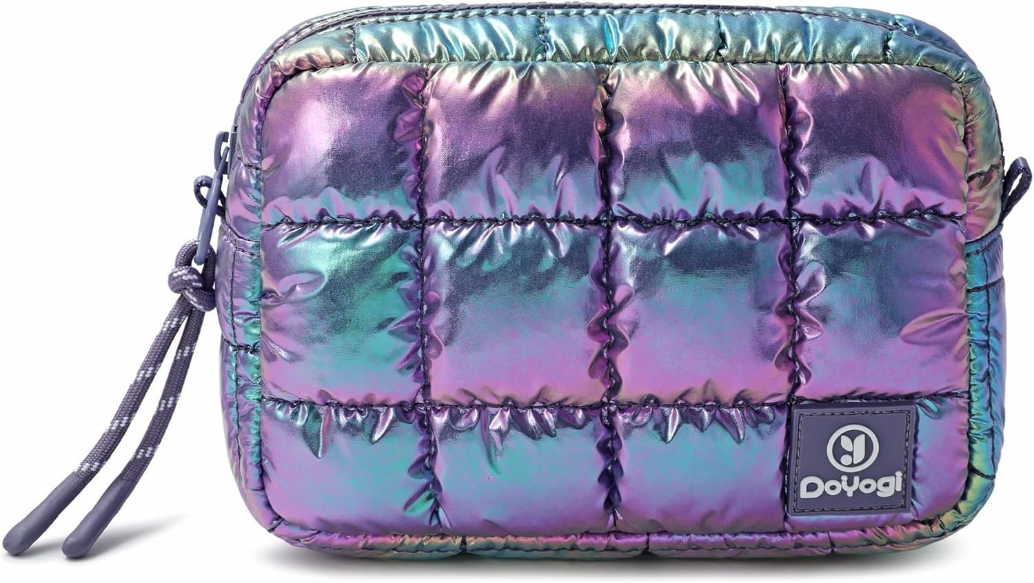 Quilted Cosmetic Bag, Puffer Makeup Bags, Crossbody Purses for women,Cute Travel Toiletry Bag for Women (Dazzling Purple)