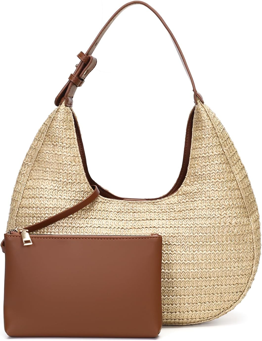 Herald Hobo Crescent Straw Handbag for Women, Summer Beach Tote Bag Purse Top Handle Satchel with Adjustable Strap