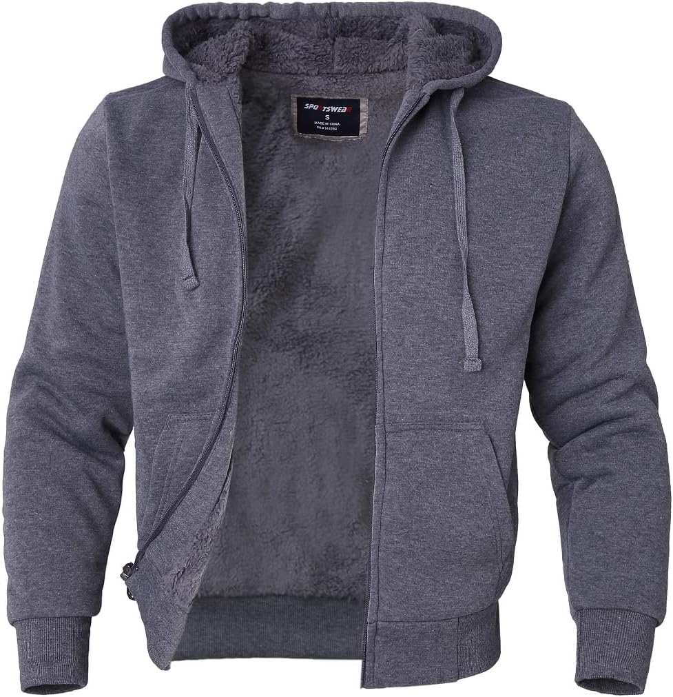 Facitisu Heavyweight Sherpa Lined Fleece Hoodie Sweatshirts for Men Winter Zip Plus Size Jacket