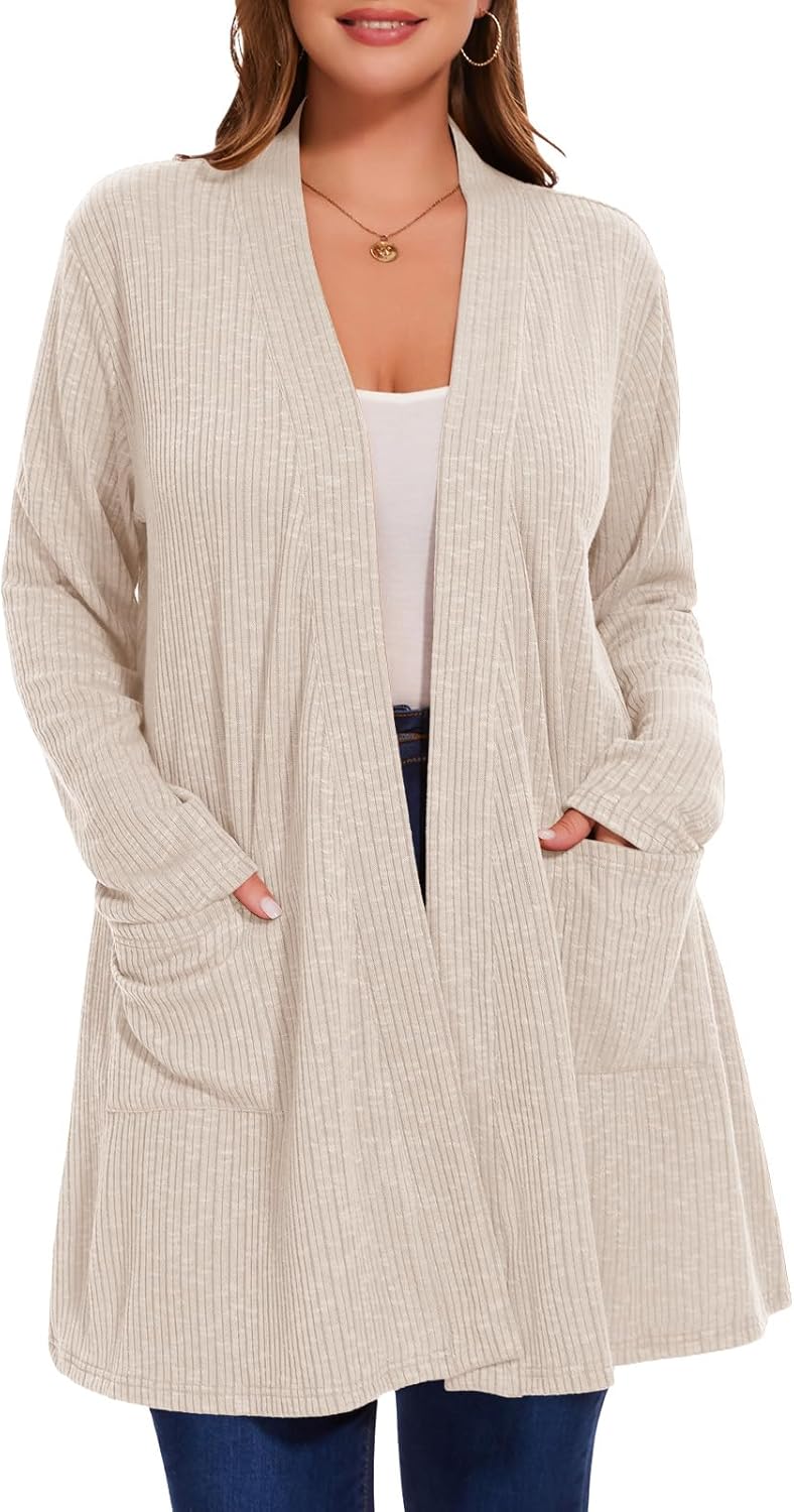 Women's Plus Size Cardigans Sweaters Casual Lightweight Open Front Cardigan Long Sleeve Tops with Pocket
