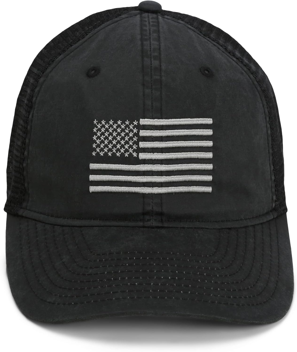 - Detailed American Flag embroidery on front of our 6-Panel Unstructured American Flag Dad Cap